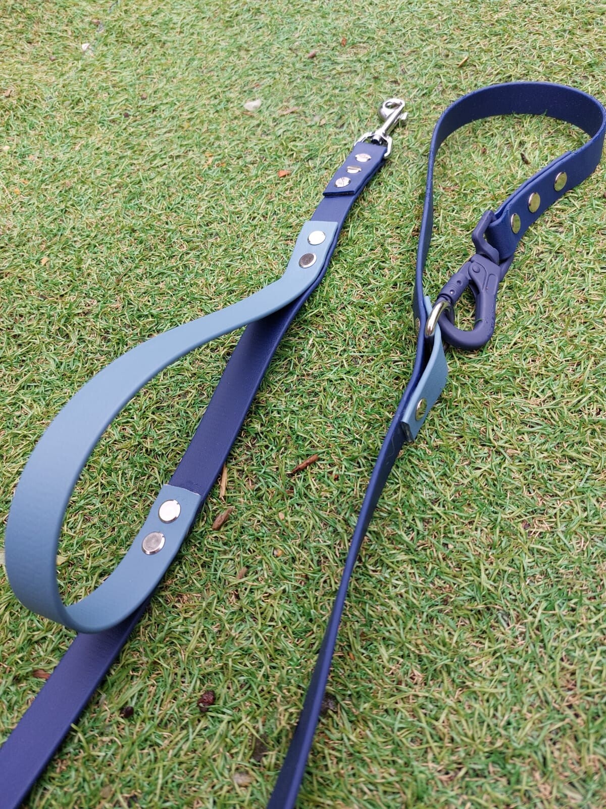 Two-toned Navy Blue hands-free Biothane leash